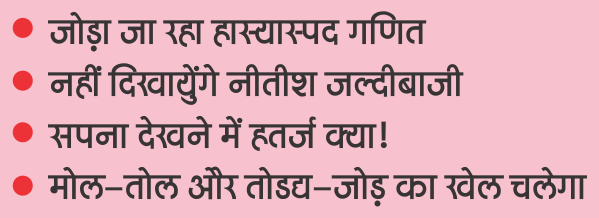 राजनीति में परिचय, पहचान और प्रभाव बढ़ाना जरूरी है. इसका मूल उद्देश्य अपनी ताकत, एकाधिकार बढ़ाना, अपनी पार्टी को सुदृढ़ करना होता है. इसलिए विरोधी दलों से ही नहीं, बल्कि गठबंधन के घटक दलों के बीच भी आंतरिक खींचतान, प्रतिस्पर्धा रहती है. मोल-तोल की सौदेबाजी होती है. राजनीति (Politics) एक ऐसा खेल है, जिसमें अपने अस्तित्व के लिए एक-दूसरे को छकाने, हराने और बुरबक बनाने की कलाबाजी जरूरी है. इसमें गलाकाट प्रतिस्पर्धा से भागना नहीं चाहिये, हाथ आजमाना चाहिये. इसलिए डायरी के पन्ने पर लिख लीजिये, वक्त जो लगे, आने वाले समय में बिहार के सियासी रंगमंच पर दिलचस्प और रोमांचक ड्रामेबाजी होगी.