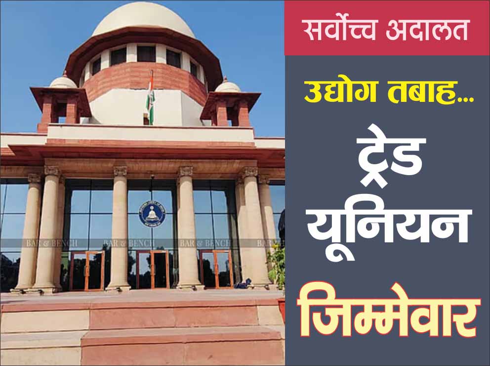 सर्वोच्च अदालत : उद्योग तबाह… ट्रेड यूनियन जिम्मेवार