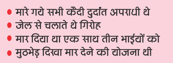 पुलिस गोली चालन में मारे गये सभी कैदी दुर्दांत थे. संजय राय 16, वकील राय 15, अक्षयवट सिंह 14, शशिभूषण सिंह 09 और अशोक उपाध्याय 08 आपराधिक मामलों में अभियुक्त था. सभी शातिर कैदी जेल के अंदर से भी गिरोह संचालित करते थे. वहां उनकी समानान्तर सत्ता थी. नककट्टा के नाम से चर्चित ‘स्नातक सरगना’ संजय राय का सारण और चंपारण के अपराध जगत में आतंक का सिक्का चलता था.